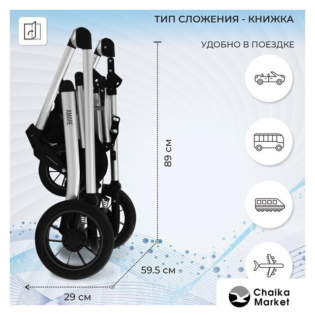 2 в 1 (люлька + прогулка), стиль: современный, ткань, шины надувные, вес 15.7 кг, цвет темно-серый