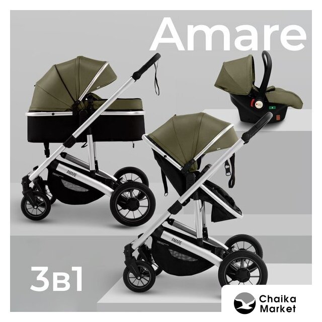 3 в 1 (прогулка + люлька + автокресло), стиль: современный, ткань, шины цельные, вес 12.4 кг, цвет черный