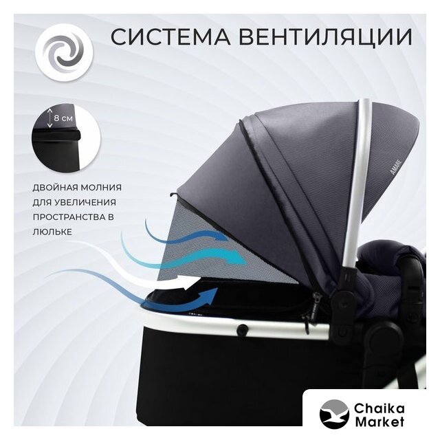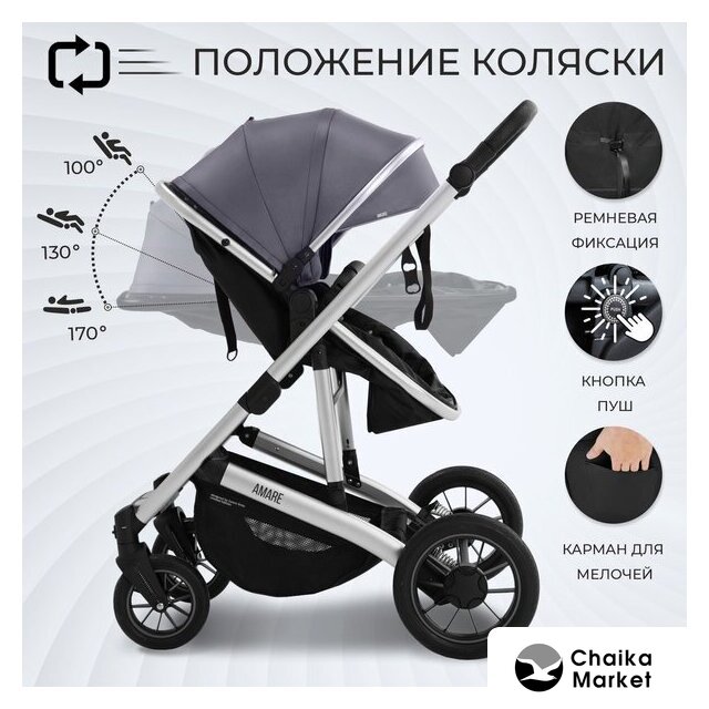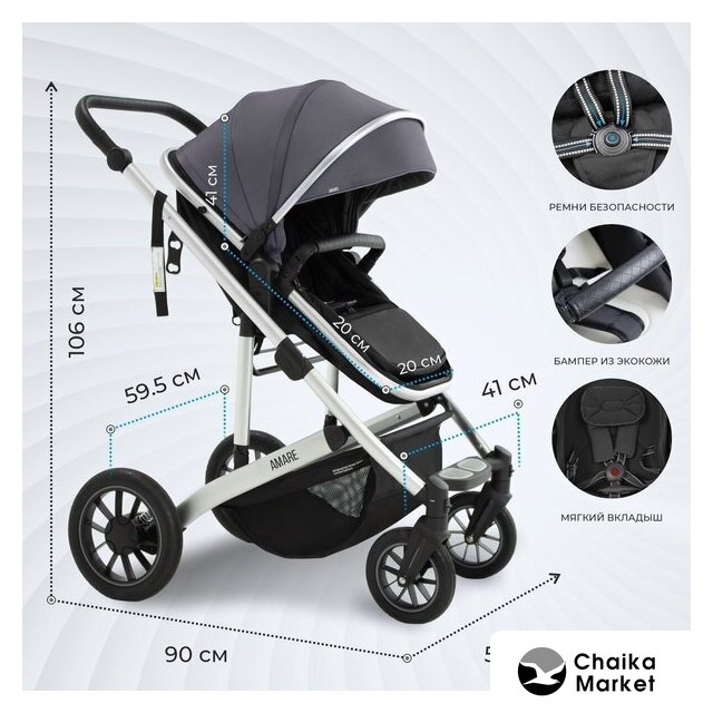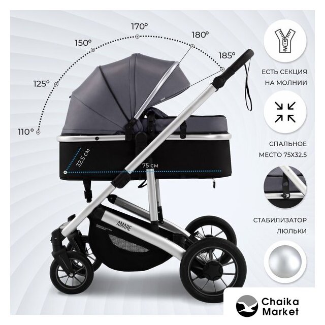 2 в 1 (люлька + прогулка), стиль: современный, ткань, шины надувные, вес 15.7 кг, цвет темно-серый