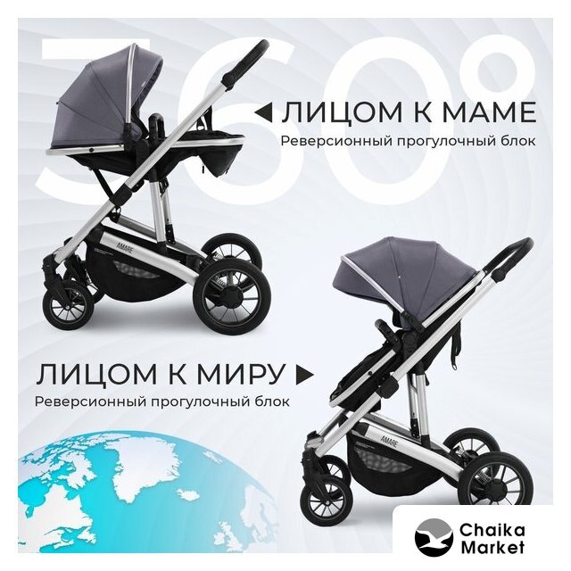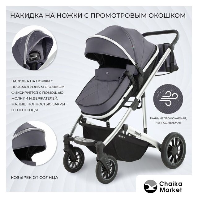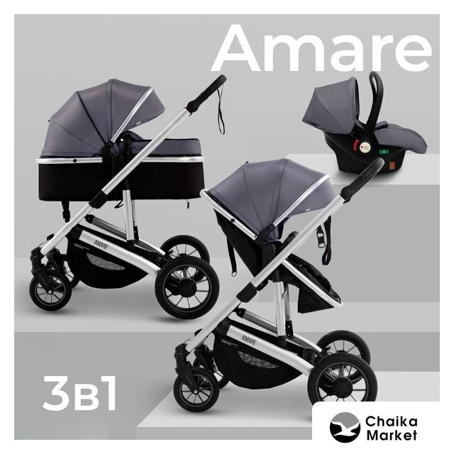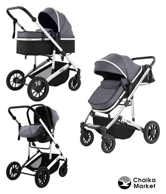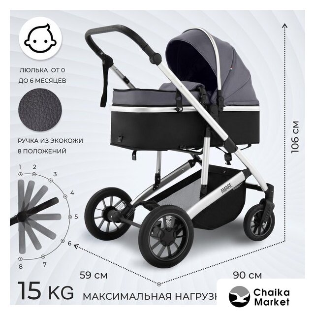 2 в 1 (люлька + прогулка), стиль: современный, ткань, шины цельные, вес 12.5 кг, цвет серый