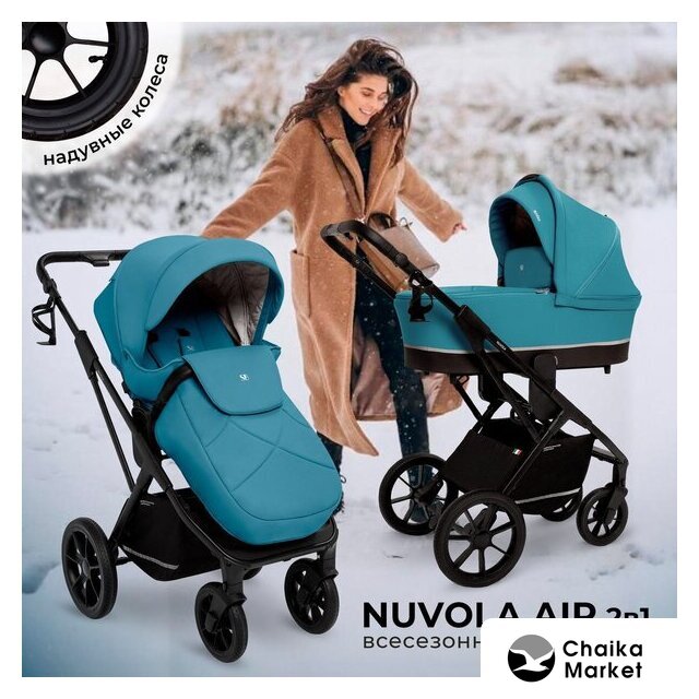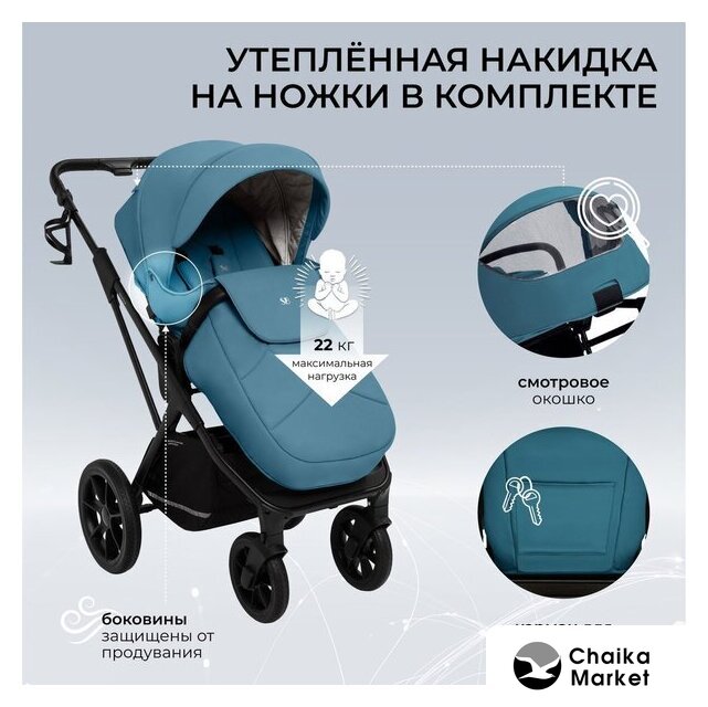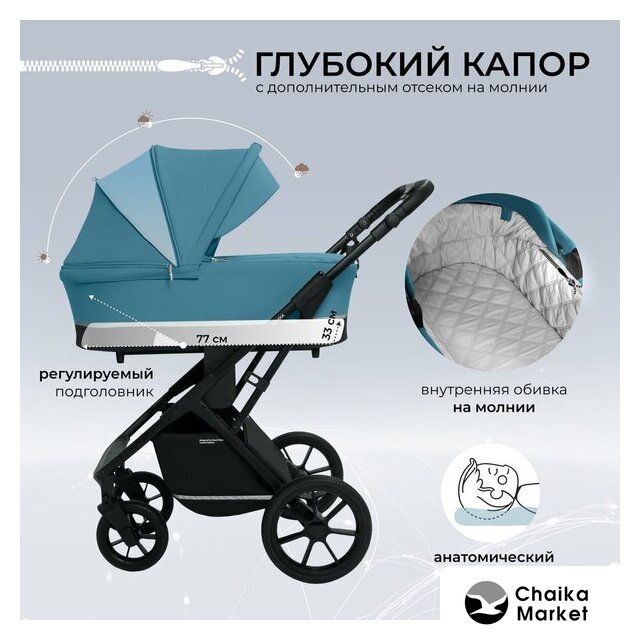 2 в 1 (люлька + прогулка), стиль: ретро, искусственная кожа, шины надувные, вес 16.3 кг, цвет голубой