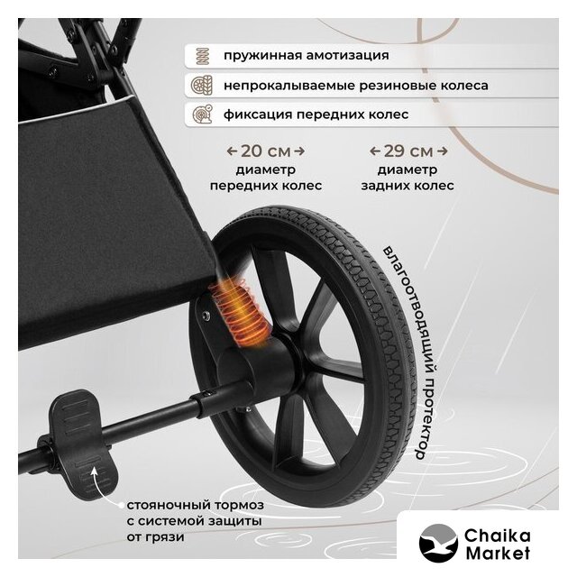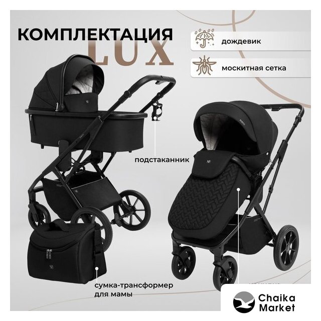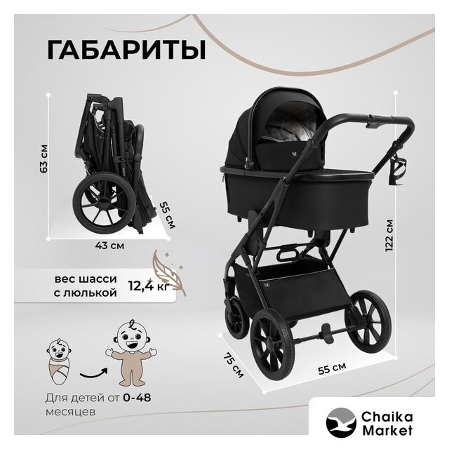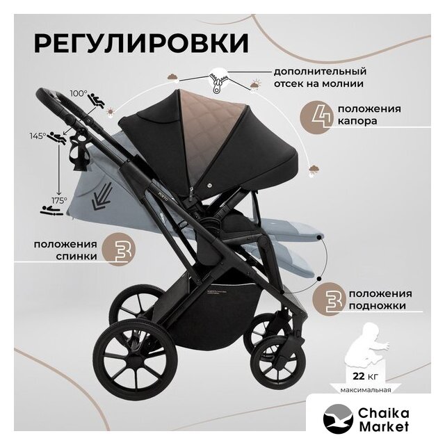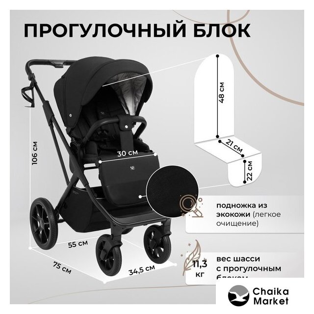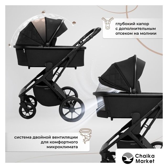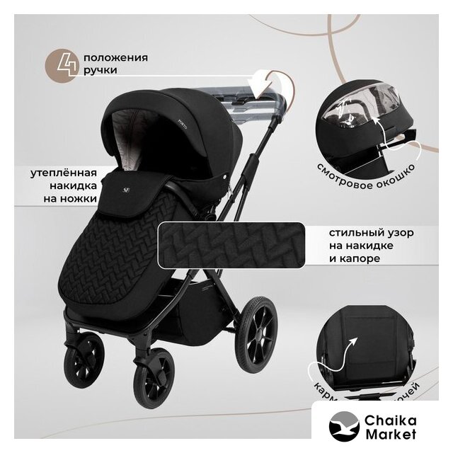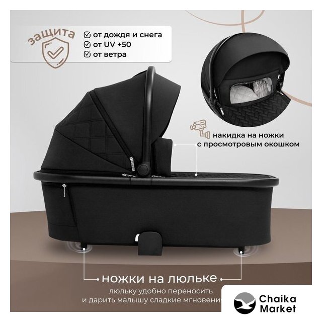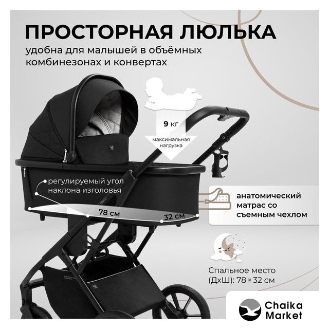 3 в 1 (прогулка + люлька + автокресло), стиль: современный, ткань, шины цельные, вес 13.1 кг, цвет черный