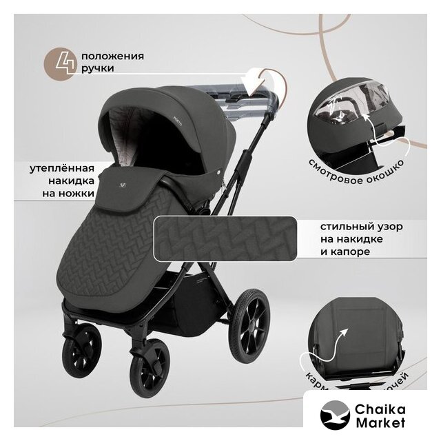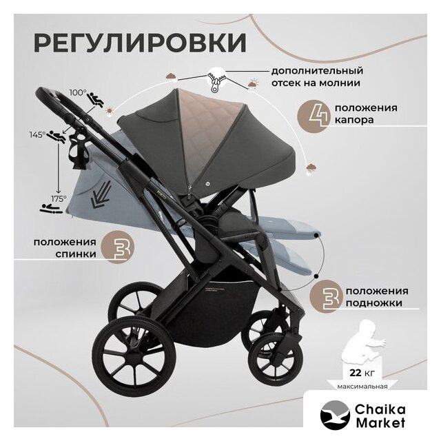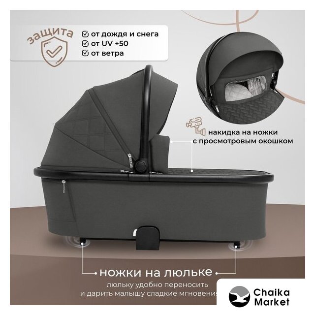 3 в 1 (прогулка + люлька + автокресло), стиль: современный, ткань, шины цельные, вес 10.9 кг, цвет темно-серый