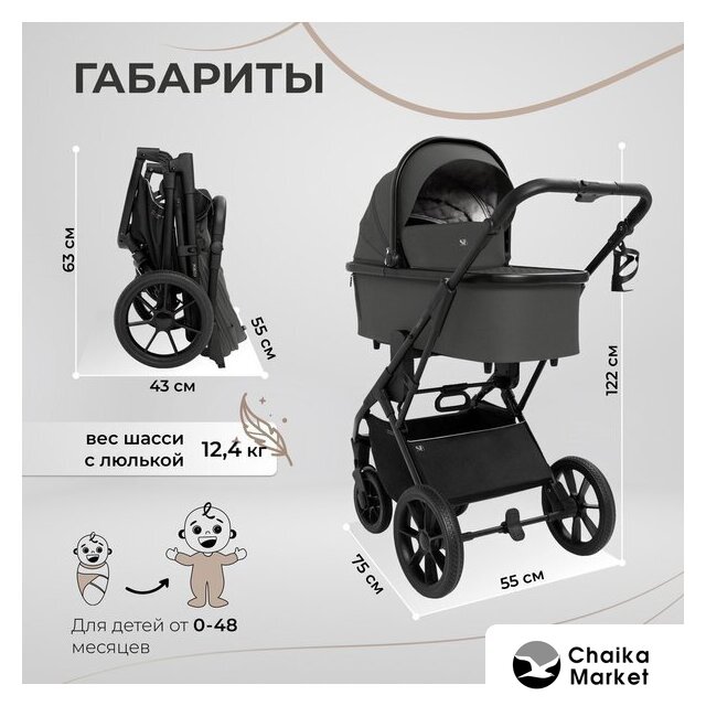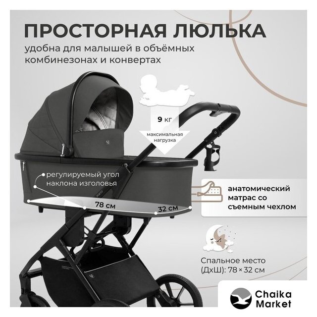 3 в 1 (прогулка + люлька + автокресло), стиль: современный, ткань, шины цельные, вес 12 кг, цвет черный