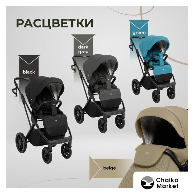 2 в 1 (люлька + прогулка), стиль: современный, искусственная кожа, шины надувные, вес 15.7 кг, цвет зеленый