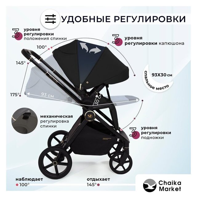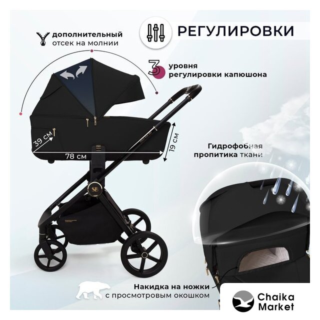 | Модульная система | 3 в 1 (прогулка + люлька + автокресло) |
