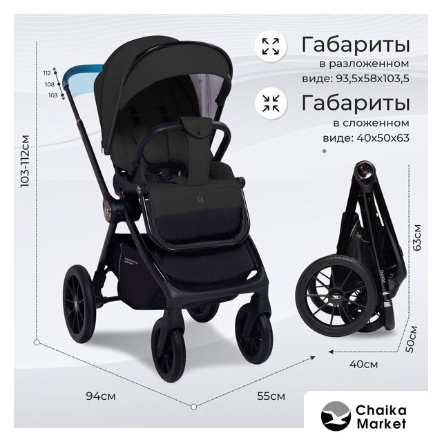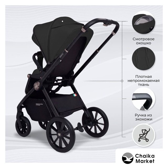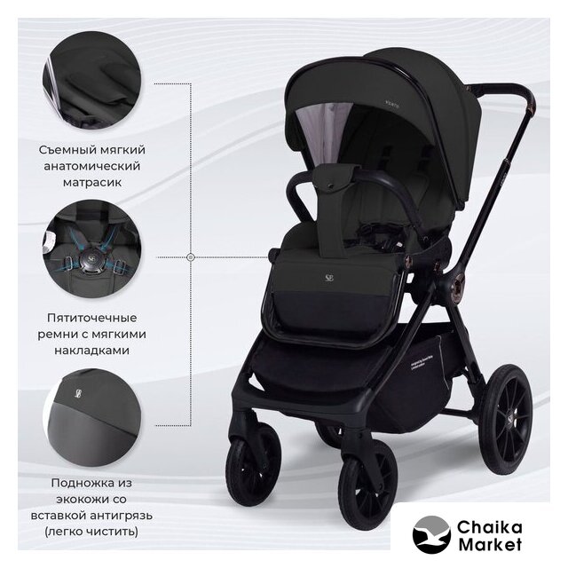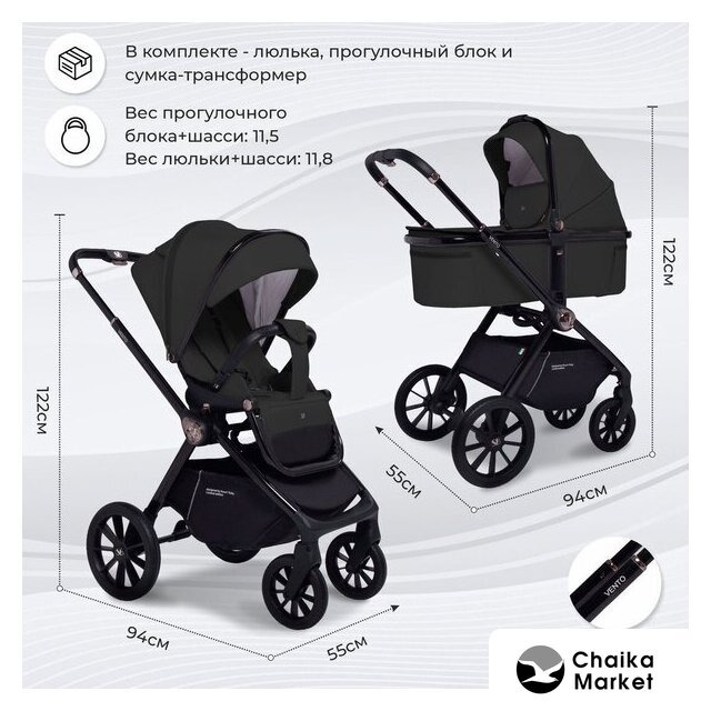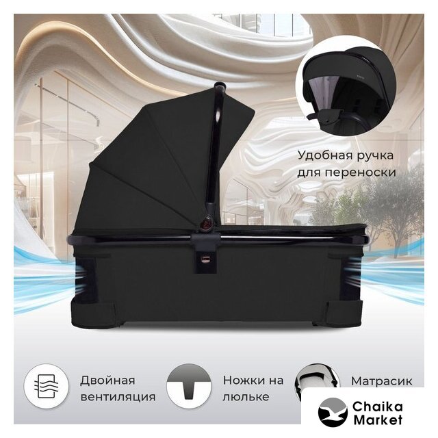 2 в 1 (люлька + прогулка), стиль: современный, ткань, шины цельные, вес 12 кг, цвет черный