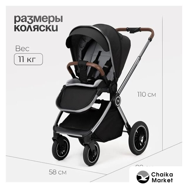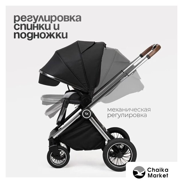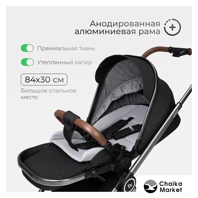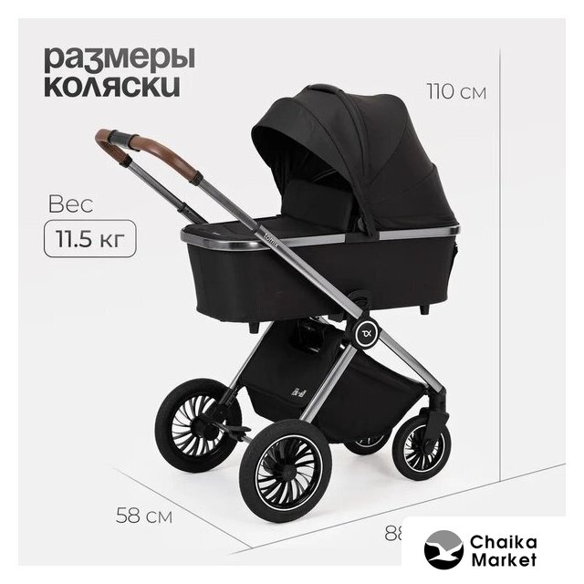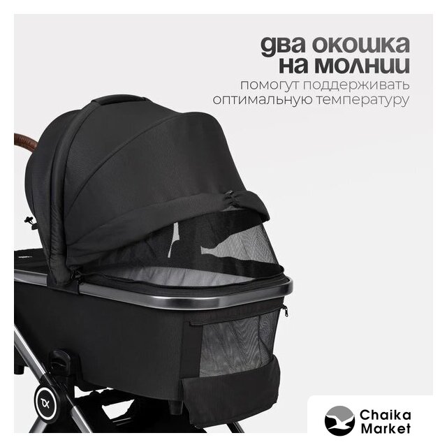 2 в 1 (люлька + прогулка), стиль: современный, ткань, вес 11.8 кг, цвет черный