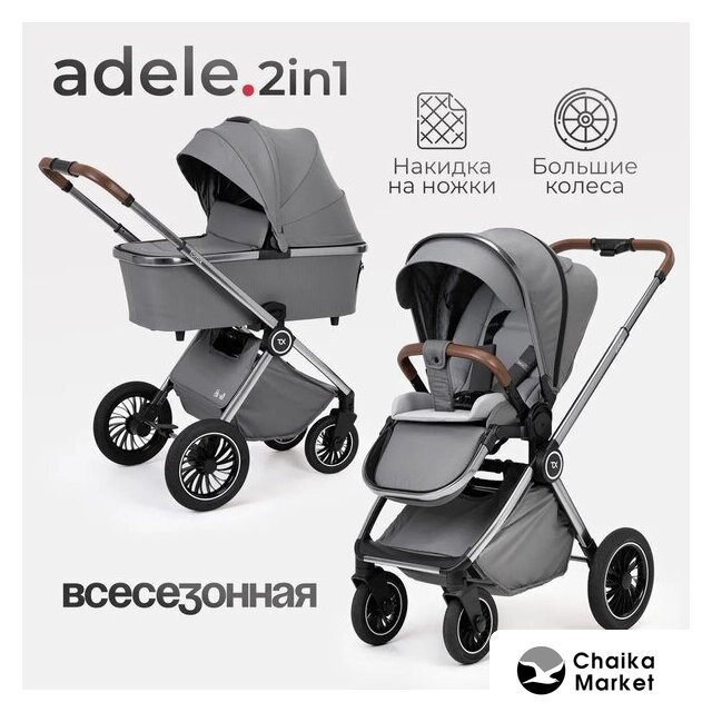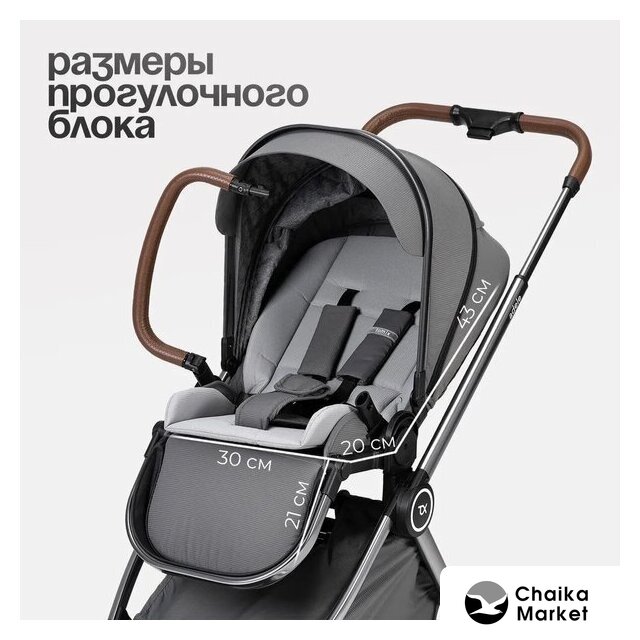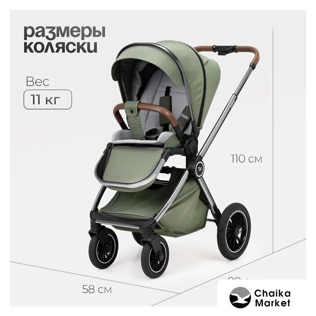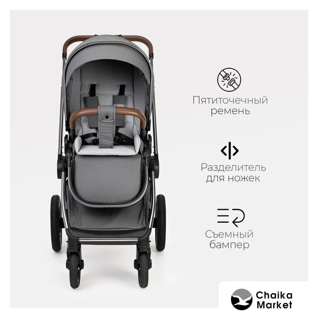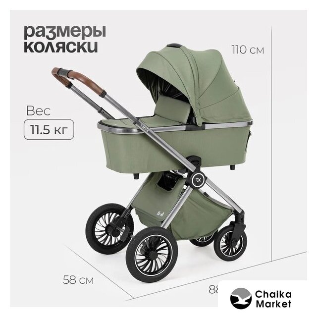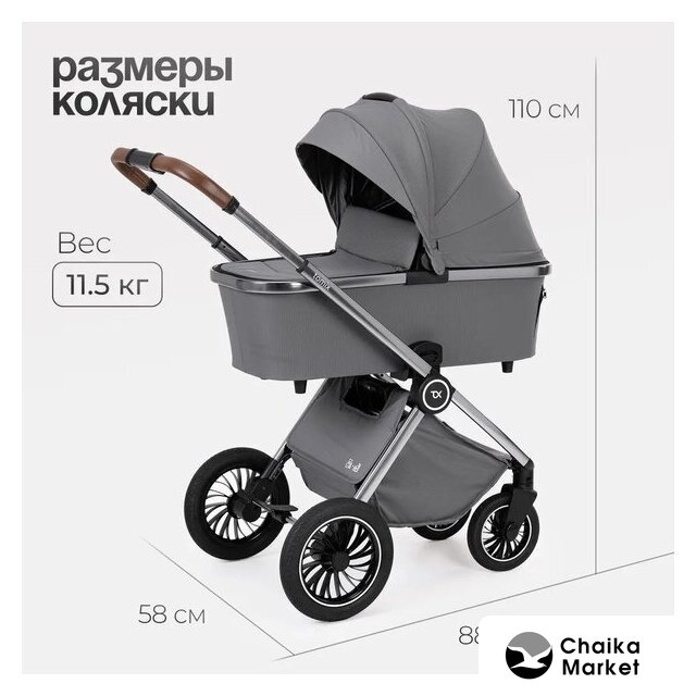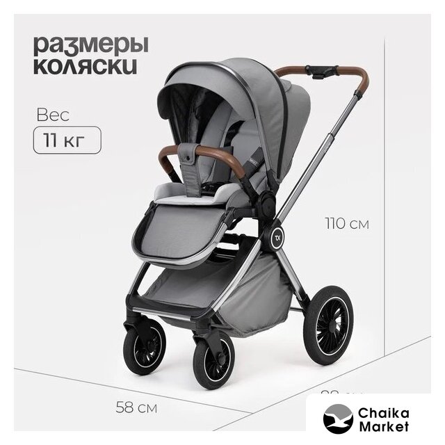 2 в 1 (люлька + прогулка), стиль: современный, ткань, шины надувные, вес 13.9 кг, цвет бежевый/коричневый