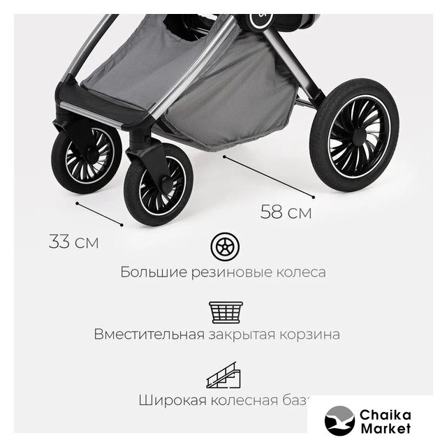 2 в 1 (люлька + прогулка), стиль: современный, ткань, шины надувные, вес 13.9 кг, цвет красный/серый