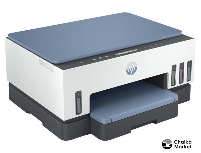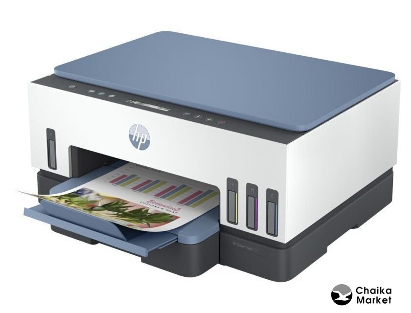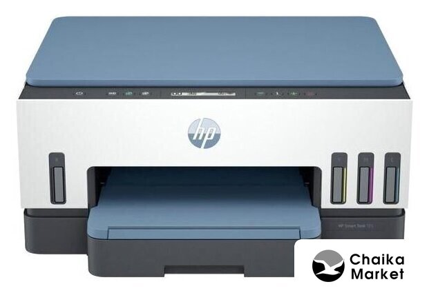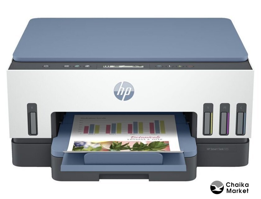 Комплектация | МФУ HP Smart Tank 725; 3 бутылочки с оригинальными черными чернилами HP GT53XL (135 мл); бутылочка с оригинальными голубыми чернилами HP GT52; бутылочка с оригинальными пурпурными чернилами HP GT52; бутылочка с оригинальными желтыми чернилами HP GT52; кабель питания; черная печатающая головка HP; трехцветная печатающая головка HP; руководство по установке; справочное руководство; листовка о безопасности при использовании чернил; листовки с нормативными требованиями; листовки с условиями гарантии |