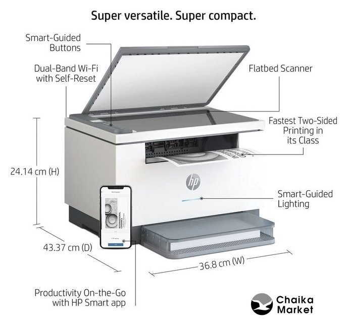 МФУ, лазерный, черно-белый, формат A4 (210x297 мм), скорость ч/б печати 20 стр/мин, разрешение 2400x600 dpi, LAN, Wi-Fi