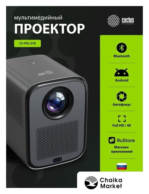 матрица LCD, WXGA (1280x720), светодиодный (LED), яркость 140 ANSI лм, расстояние 0.8-5 м, экран 20-200", Wi-Fi