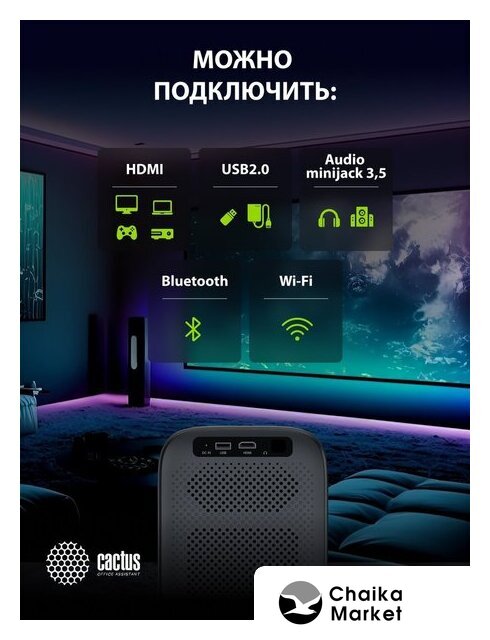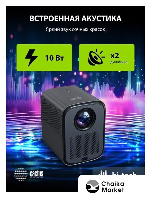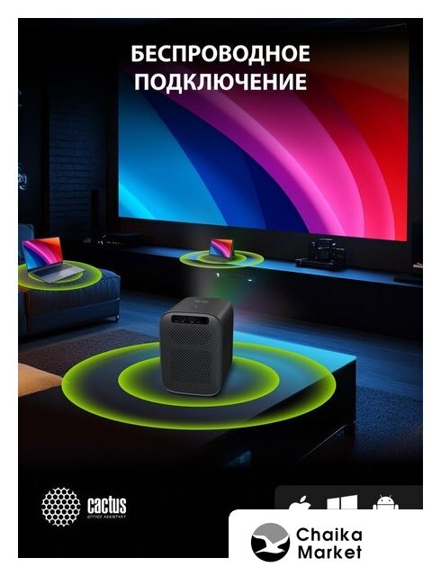 портативный, матрица LCD, WXGA (1280x720), светодиодный, яркость 250 ANSI лм, контраст 1500:1, экран 40-100", Wi-Fi