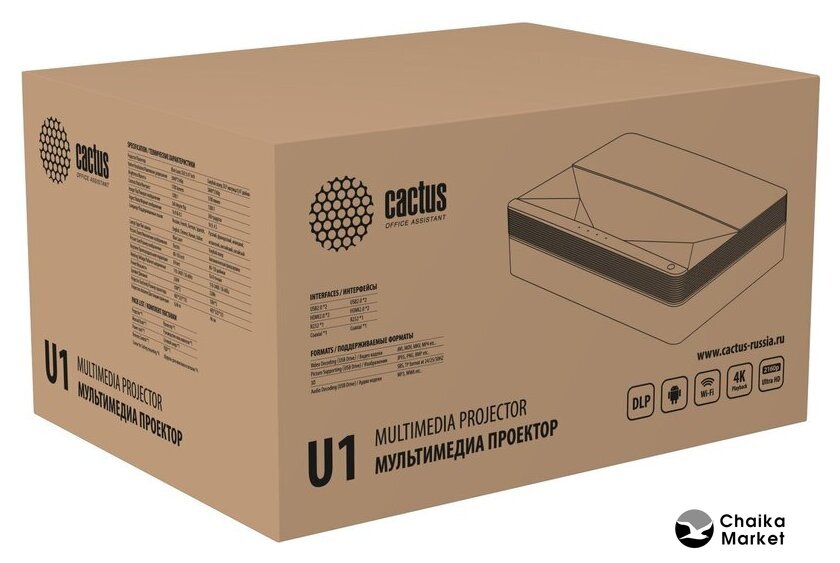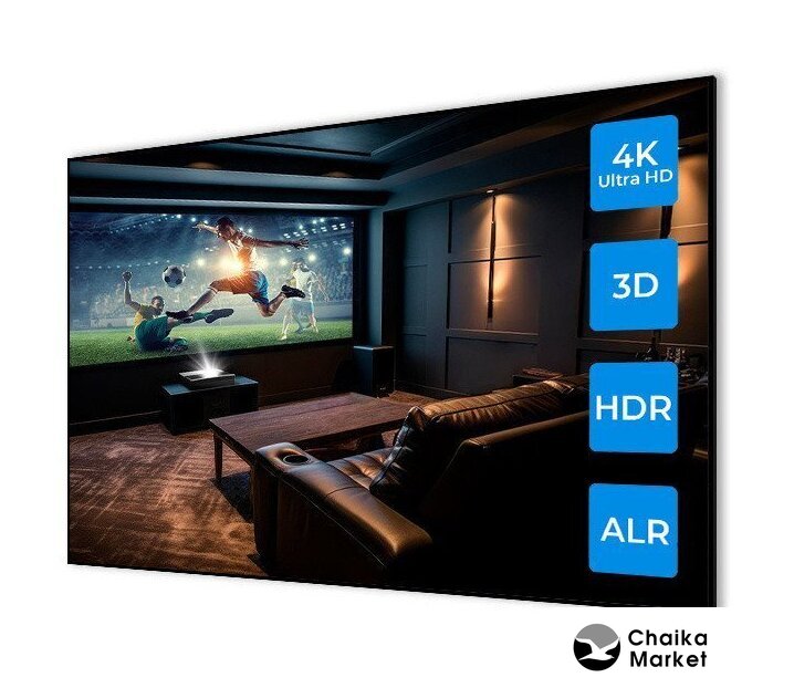 для домашнего кинотеатра/игровой, матрица DLP, UHD (3840x2160), ламповый, яркость 3600 ANSI лм, расстояние 0.4-3.3 м, экран 36.4-300.5"