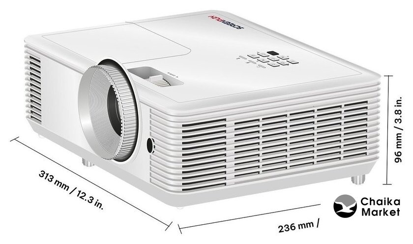 презентационный, матрица DLP, XGA (1024x768), ламповый, яркость 3300 ANSI лм, контраст 10000:1, расстояние 0.7-1.8 м, экран 60-150", LAN