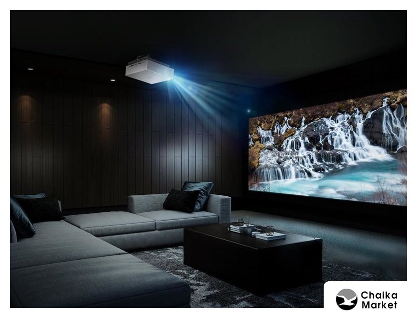 матрица DLP, UHD (3840x2160), лазерный, яркость 2000 ANSI лм, контраст 3000000:1, расстояние 0.1-0.5 м, экран 65-150", LAN, Wi-Fi