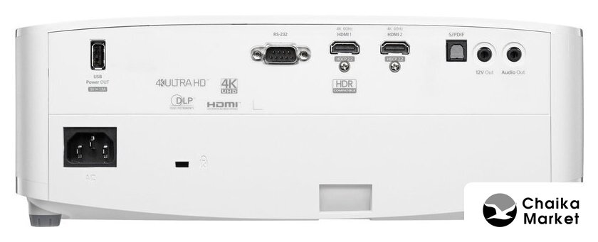 для домашнего кинотеатра/игровой, матрица DLP, UHD (3840x2160), ламповый, яркость 3200 ANSI лм, контраст 12000:1, расстояние 1-11 м, экран 30-300"