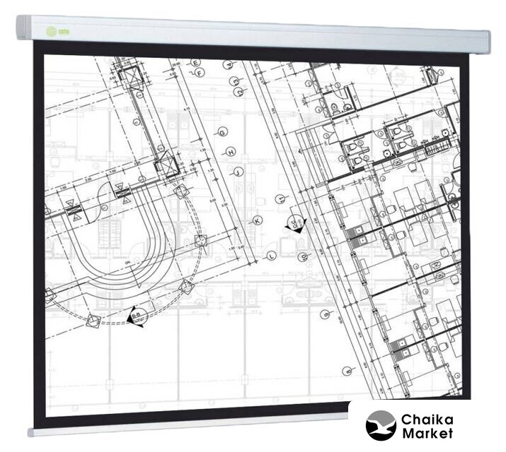 194x194 см, 110" 1:1, стационарный, рулонный ручной, настенный/потолочный, покрытие матовое белое 1:1