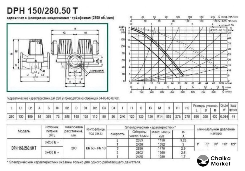 циркуляционный, 49 м³/ч, напор 16.9 м, давление 10 бар