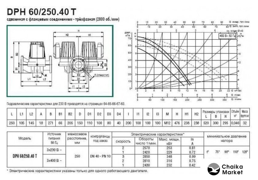 циркуляционный, 55 м³/ч, напор 18 м, давление 10 бар