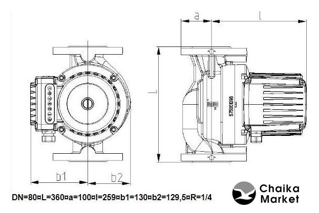 циркуляционный, 30 м³/ч, напор 14.3 м, давление 16 бар