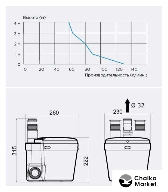 канализационная установка, 8.7 м³/ч, напор 8 м