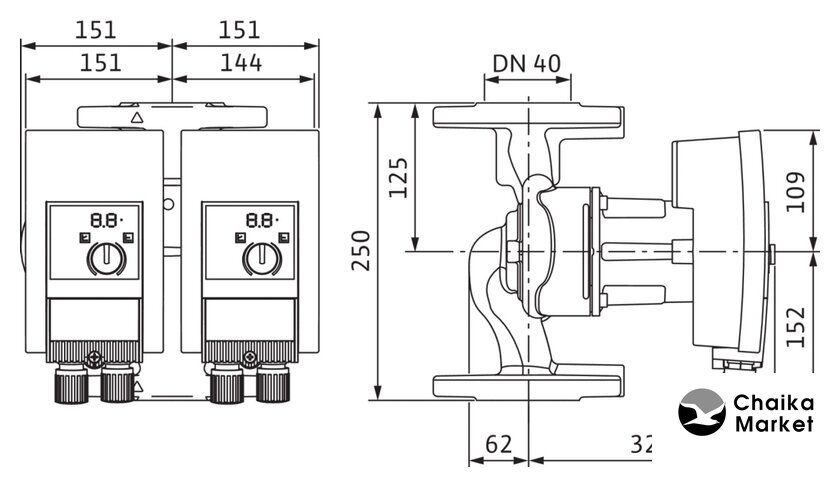 циркуляционный, 40 м³/ч, напор 10.9 м, давление 10 бар