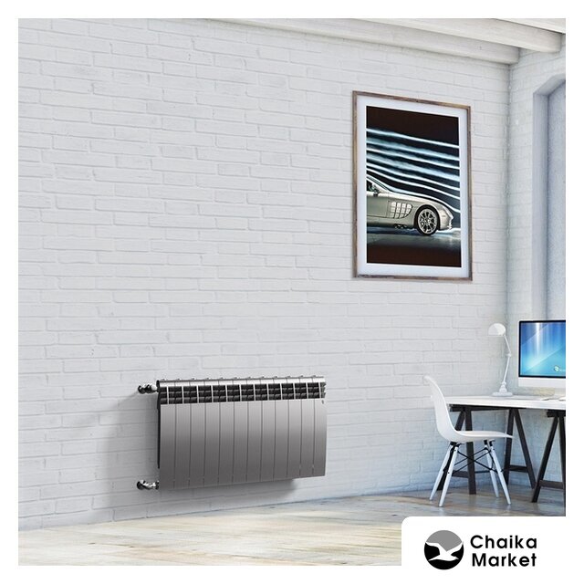 алюминиевый, боковое подключение, ΔТ = 70 K: 1008 Вт, высота: 580 мм, межосевое расстояние: 500 мм, посадочный диаметр: 1/2";3/4"