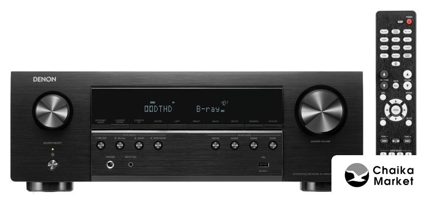 AV ресивер, 5 каналов, 75 Вт/8 Ом, 100 Вт/6 Ом, выходы 5.1/5.2, КНИ 0.08%, SNR 98 дБ, USB, LAN, BT, Wi-Fi