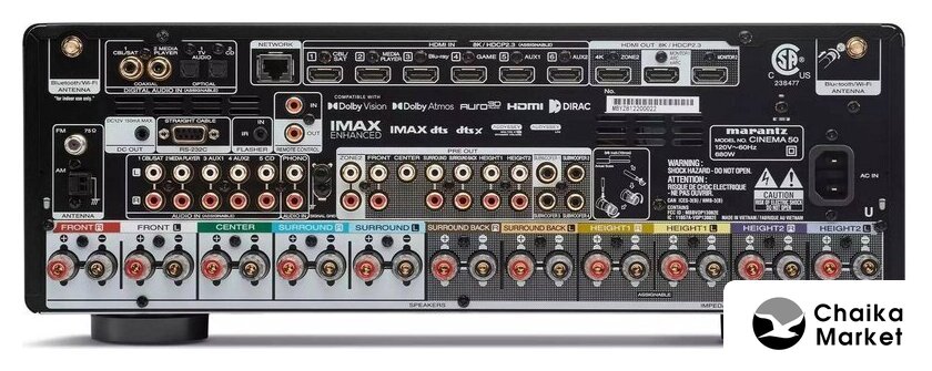 AV ресивер, 9 каналов, 180 Вт/6 Ом, выходы 5.2.4/7.2.2, КНИ 0.08%, SNR 106 дБ, USB, LAN, BT, Wi-Fi
