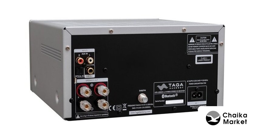 стереоресивер, 2 канала, 85 Вт/8 Ом, выходы 2.1, КНИ 0.15%, SNR 82 дБ, BT