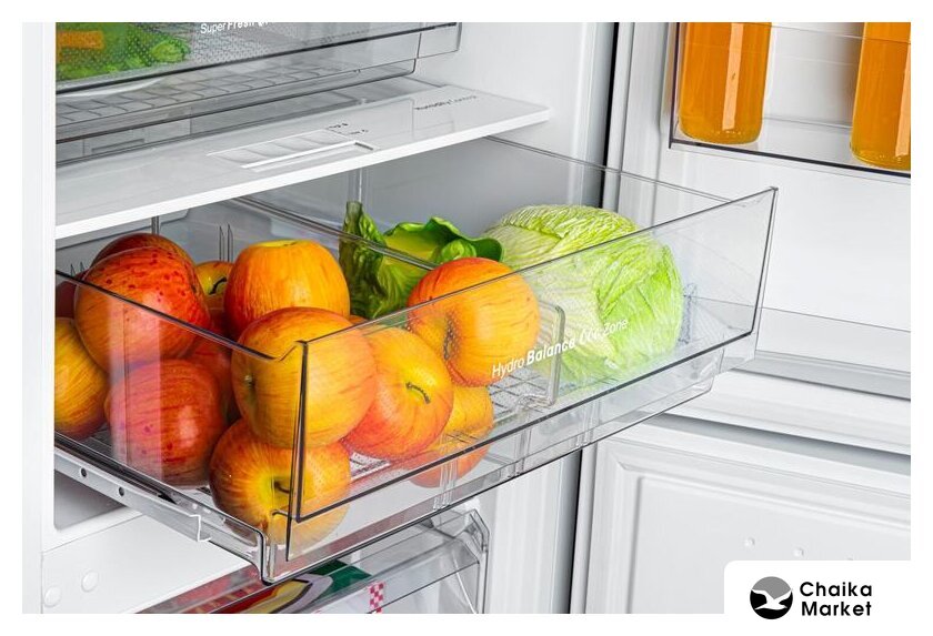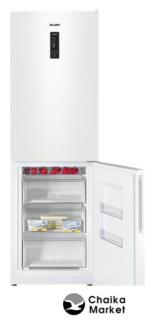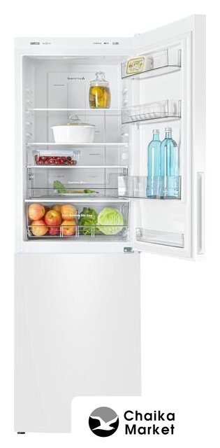 отдельностоящий, без No Frost, механическое управление, класс A+, полезный объём: 375 л (275 + 100 л), зона свежести, перенавешиваемые двери, лоток для яиц, 69.5x62.5x195.5 см, белый