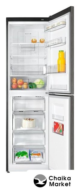отдельностоящий, полный No Frost, электронное управление, класс A+, полезный объём: 317 л (223 + 94 л), перенавешиваемые двери, лоток для яиц, отделка: стекло, 59.5x63.5x185 см, черный