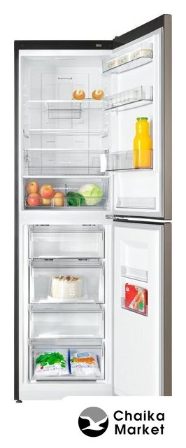 отдельностоящий, полный No Frost, электронное управление, класс A+, полезный объём: 348 л (254 + 94 л), зона свежести, перенавешиваемые двери, автодоводчик дверей, складная полка, выдвижной/подвесной контейнер, подставка-лоток для бутылок, лоток для яиц, 59.5x66x206.8 см, бронзовый