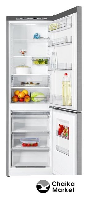 отдельностоящий, без No Frost, электронное управление, класс A+, полезный объём: 370 л (251 + 119 л), зона свежести, перенавешиваемые двери, выдвижной/подвесной контейнер, лоток для яиц, 59.5x62.7x206.8 см, серебристый
