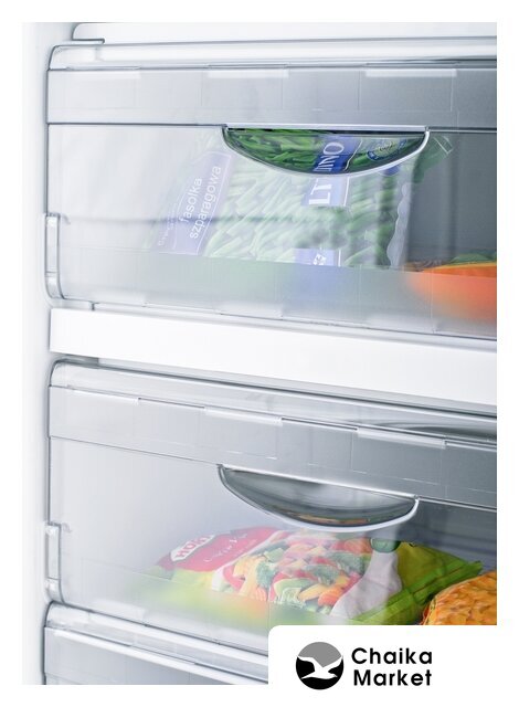отдельностоящий, полный No Frost, электронное управление, класс A, полезный объём: 325 л (247 + 78 л), перенавешиваемые двери, лоток для яиц, 60x64x196 см, белый