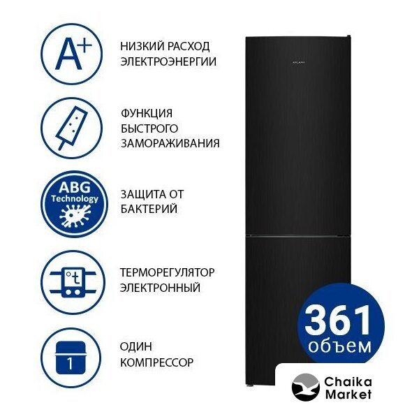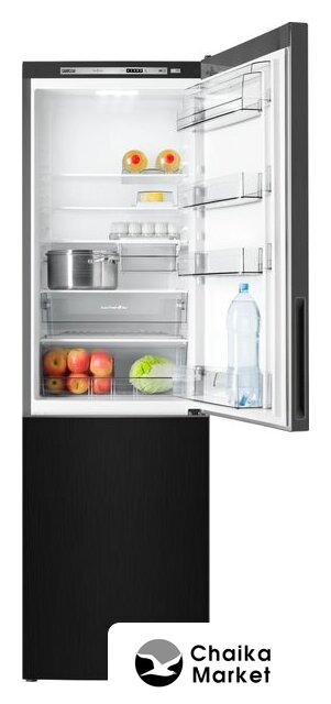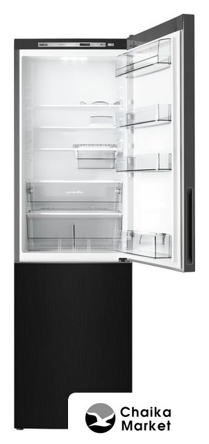 отдельностоящий, без No Frost, электронное управление, класс A+, полезный объём: 262 л (187 + 75 л), перенавешиваемые двери, лоток для яиц, 54x55x176 см, черный