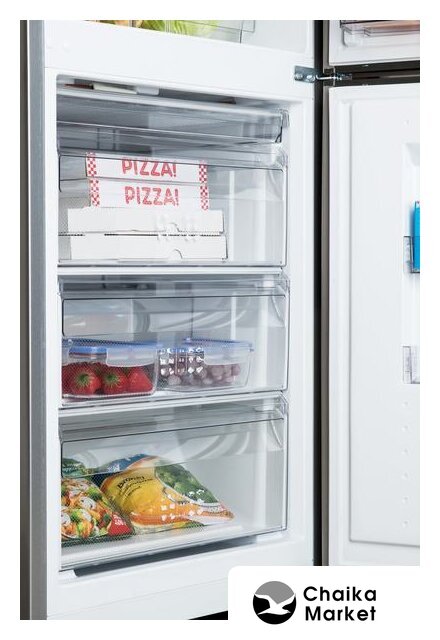 отдельностоящий, полный No Frost, электронное управление, класс A+, полезный объём: 320 л (220 + 100 л), зона свежести, перенавешиваемые двери, лоток для яиц, отделка: защита от отпечатков, 59.5x65x186 см, нержавеющая сталь