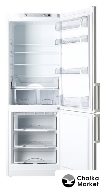 отдельностоящий, без No Frost, электронное управление, класс A+, полезный объём: 347 л (228 + 119 л), зона свежести, лоток для яиц, подставка-лоток для бутылок, 59.5x62.7x196.8 см, серебристый
