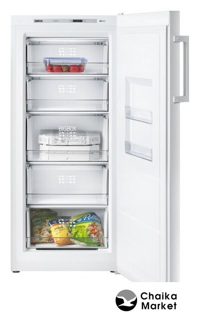 отдельностоящий, без No Frost, электронное управление, класс A+, полезный объём: 284 л (205 + 79 л), зона свежести, перенавешиваемые двери, лоток для яиц, 59.5x62.9x166.8 см, белый