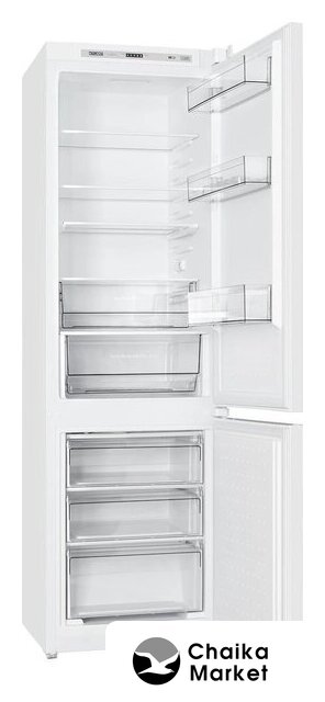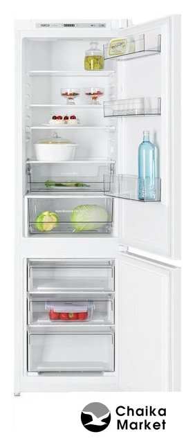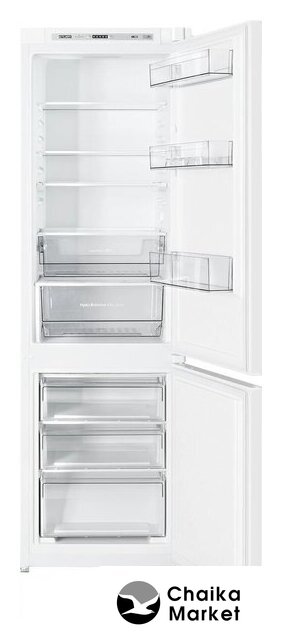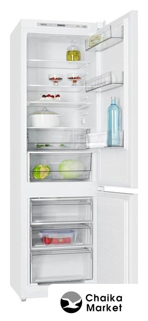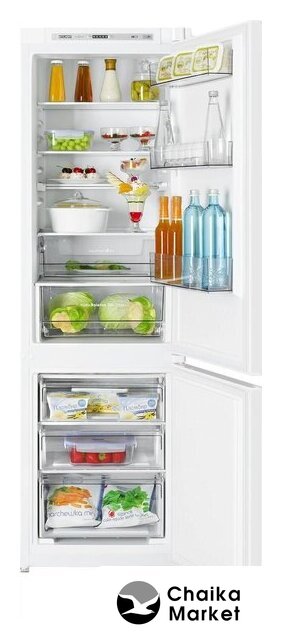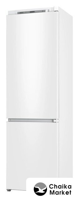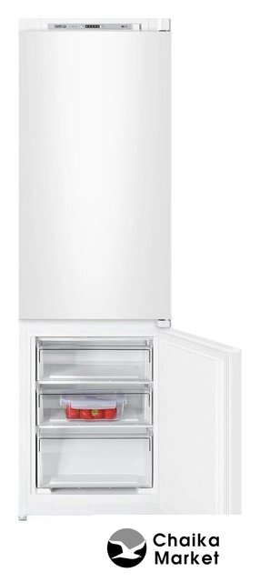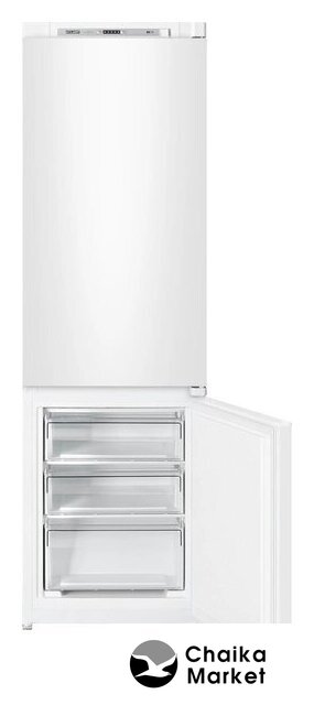 встраиваемый, без No Frost, электронное управление, класс A+, полезный объём: 250 л (185 + 65 л), перенавешиваемые двери, лоток для яиц, 54x54x178 см, белый