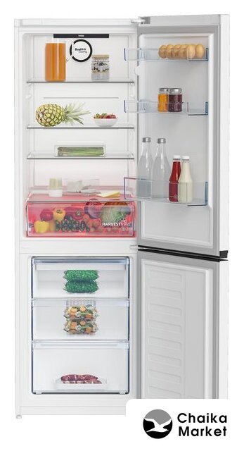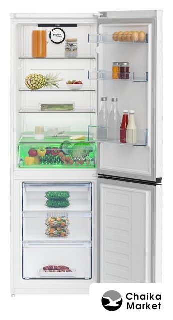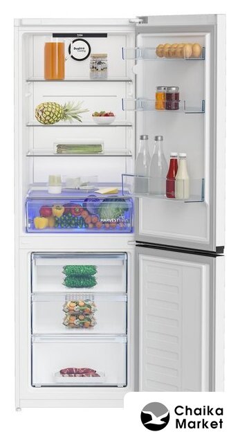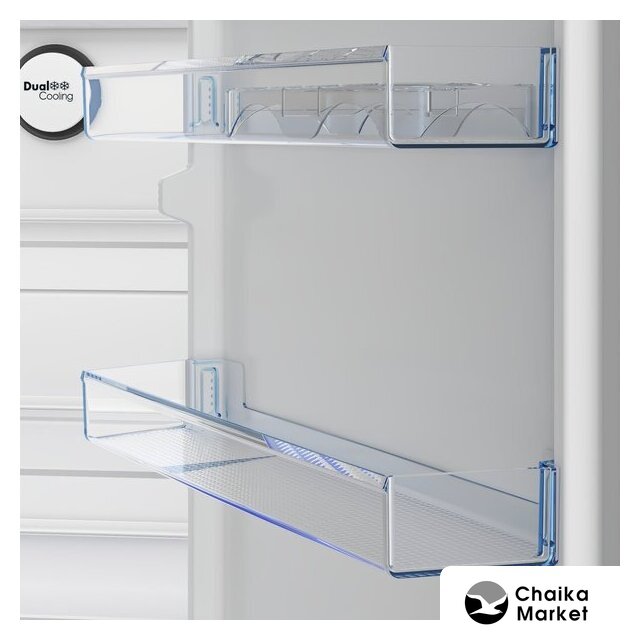 отдельностоящий, полный No Frost, электронное управление, класс A+, полезный объём: 281 л (187 + 94 л), перенавешиваемые двери, автодоводчик дверей, складная полка, полка для вина, лоток для яиц, 59.5x66x176.8 см, белый