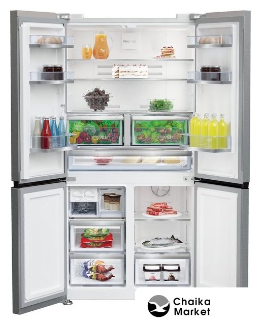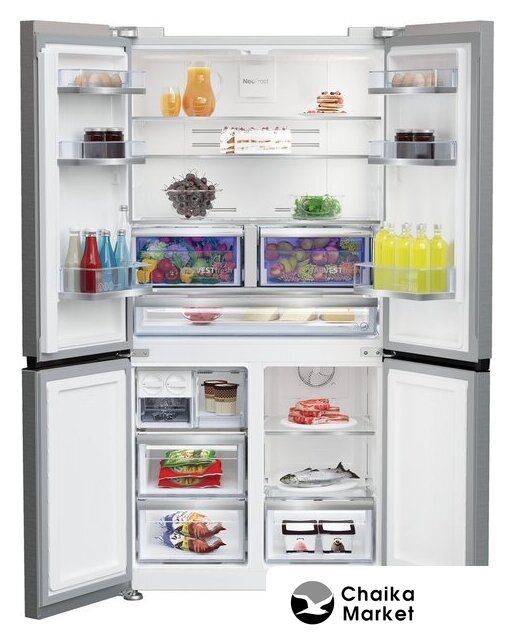 отдельностоящий, полный No Frost, электронное управление, полезный объём: 605 л (405 + 200 л), зона свежести, лоток для яиц, 90.5x73.1x183 см, темная сталь