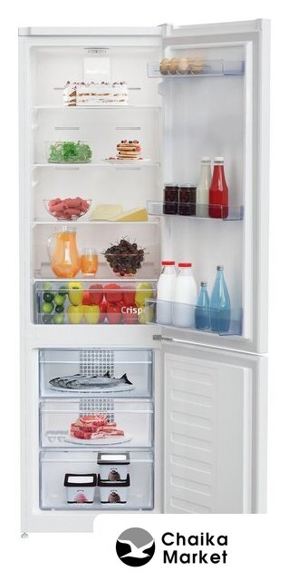 отдельностоящий, полный No Frost, электронное управление, полезный объём: 409 л (289 + 120 л), перенавешиваемые двери, нулевой зазор, лоток для яиц, 59.5x66.7x205 см, белый