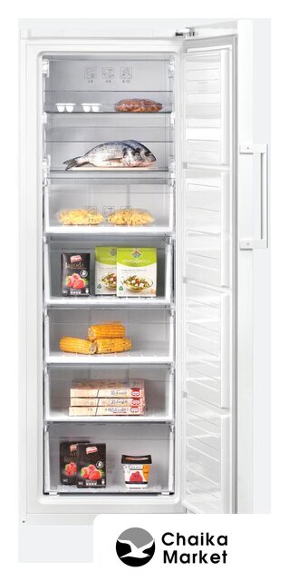 отдельностоящий, полный No Frost, механическое управление, класс A, полезный объём: 256 л (181 + 75 л), перенавешиваемые двери, лоток для яиц, 60x64x167 см, белый