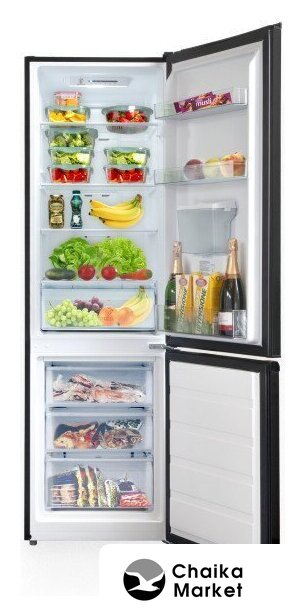 отдельностоящий, полный No Frost, электронное управление, полезный объём: 304 л (207 + 97 л), инверторный компрессор, зона свежести, перенавешиваемые двери, нулевой зазор, полка для вина, лоток для яиц, 59.5x59x186 см, черный