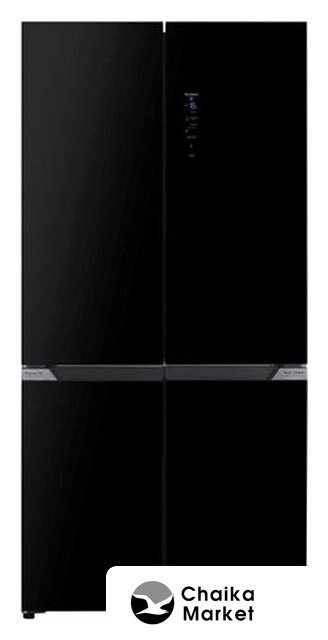 отдельностоящий, полный No Frost, электронное управление, полезный объём: 522 л (343 + 179 л), зона свежести, лоток для яиц, отделка: стекло, 90.9x69x190 см, черный