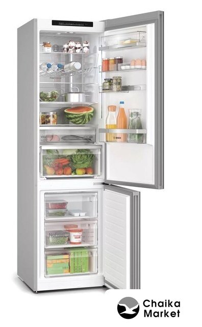 отдельностоящий, полный No Frost, электронное управление, класс A++, полезный объём: 430 л (261 + 169 л), диспенсер, лоток для яиц, 83.9x63.7x176.3 см, нержавеющая сталь