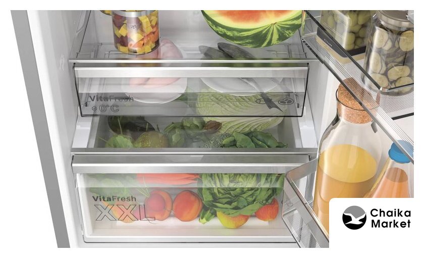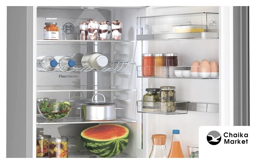 отдельностоящий, полный No Frost, сенсорное управление, класс A++, полезный объём: 462 л (340 + 122 л), инверторный компрессор, перенавешиваемые двери, выдвижной/подвесной контейнер, лоток для яиц, 75.9x71.1x192 см, темная сталь